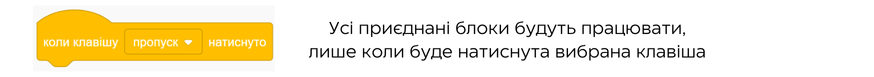 Блоки подій дозволяють встановлювати взаємодії між спрайтами та користувачем. Наприклад, блок “коли натиснуто зелений прапорець” запускає програму, а “коли натиснуто клавішу “пробіл”” виконує певну дію.