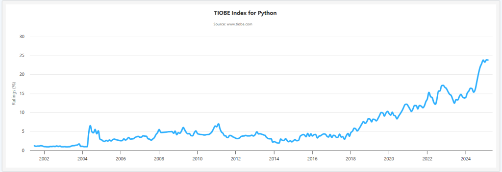 - У 2025 році займає 1-ше місце у рейтингу мов програмування TIOBE Index.