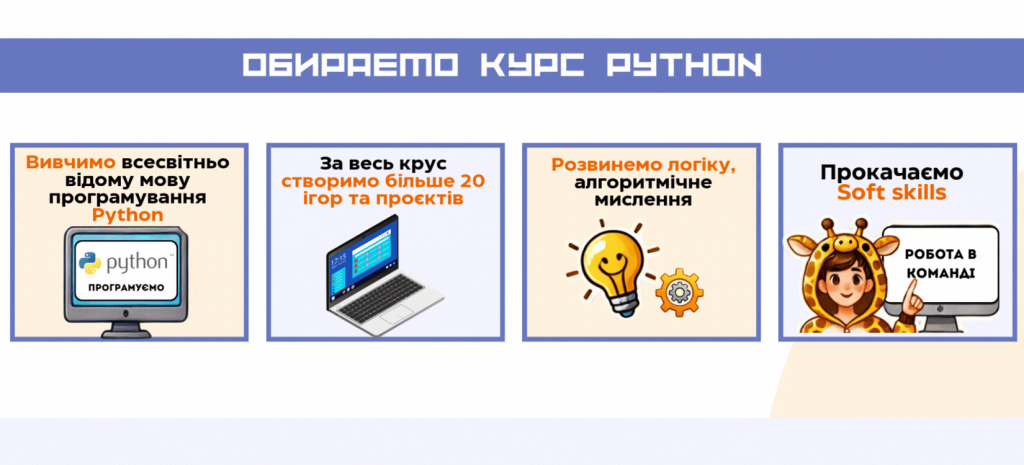 Пайтон — одна з найкращих мов програмування для старту. Її простий і зрозумілий синтаксис дозволяє легко освоювати програмування навіть на початкових етапах навчання, відкриваючи перспективи для майбутніх IT-спеціалістів.