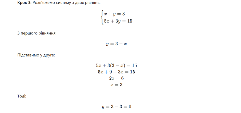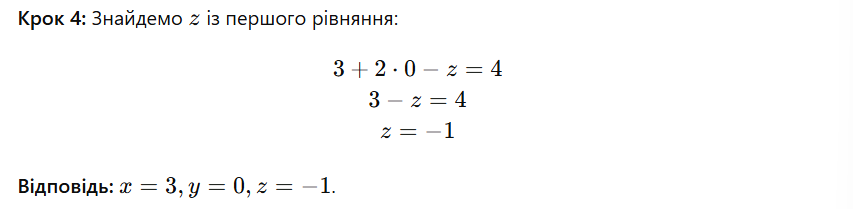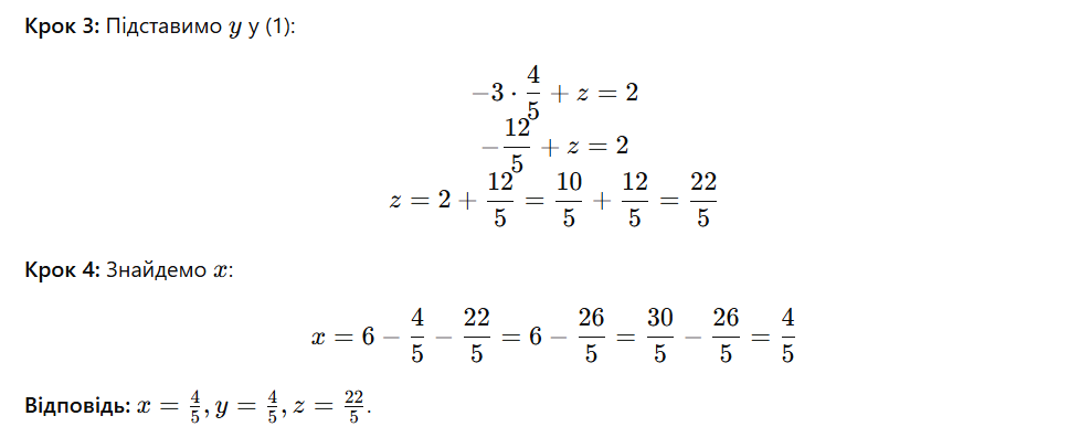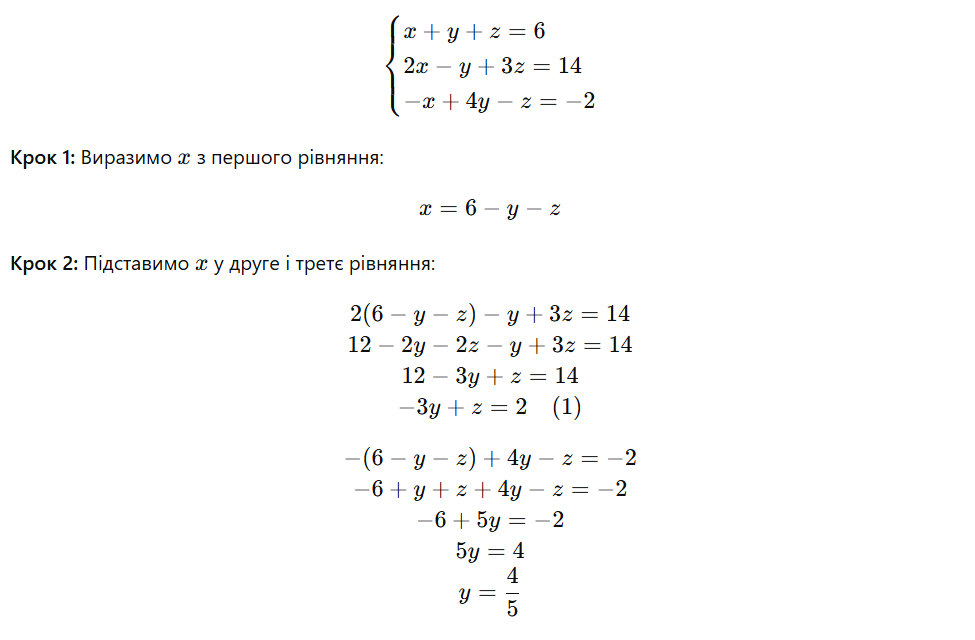 Приклад 1. Розв’язання методом підстановки для системи з трьома невідомими