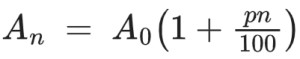 Якщо банк виплачує клієнтові щомісячно р% внесеної суми А0, то на рахунку клієнта через n місяців буде така сума: