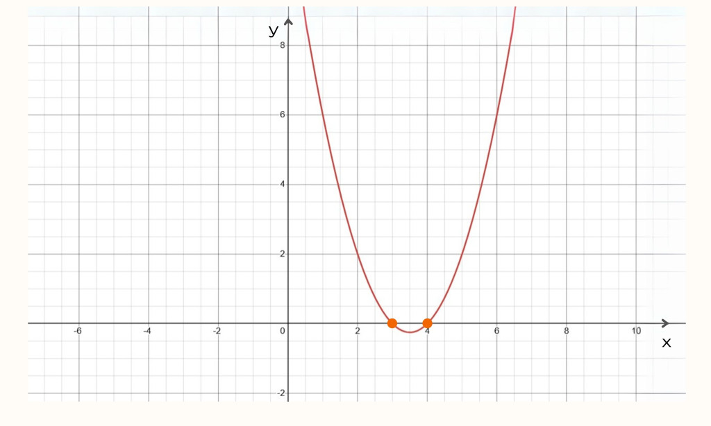 З графіка видно, що парабола перетинає вісь x у точках x=3 та x=4. Отже, корені рівняння x2−7x+12=0 дорівнюють 3 та 4.