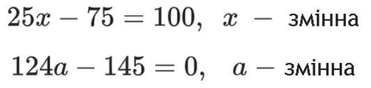 Рівняння — це математична рівність, яка містить невідоме число, представлене змінною у вигляді літери.